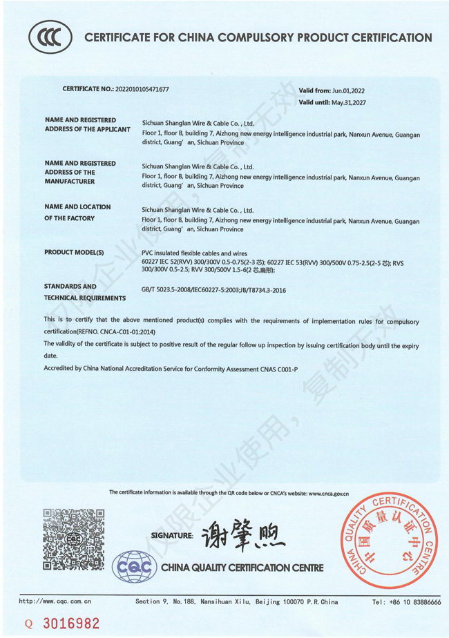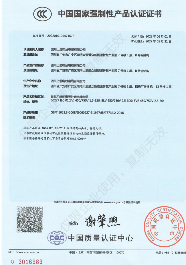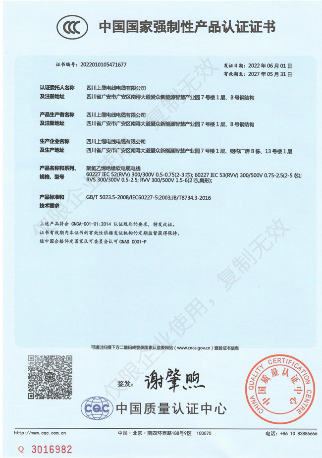 四川上缆电线电缆有限公司是一家专业从事线缆及附件生产销售的专业厂家,是集科研、开发、生产、销售为一体的大型综合性企业,公司拥有注册商标:鑫上缆。